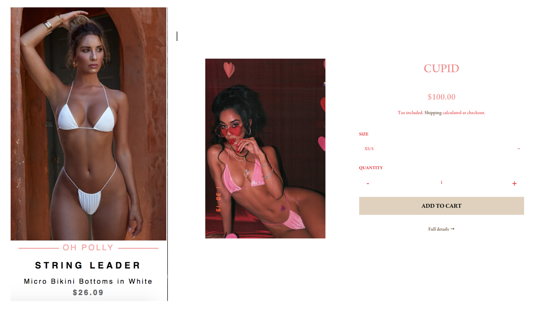 As seen in the above picture, the similarities between the two are strikingly similar. Down to the micro strings on the sides and the cut of the bikini, it is clear that Oh Polly took this design from Doval. She addressed this controversy in a now deleted Instagram post calling the brand out for their swim designs. The brand did not respond and continues to sell this stolen design today on their website.